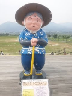 There is the mascot of Asobou where is in Kugino,so I went there with my grand mother and my mom, so when I want to feel fresh, so I often go there, so there is very beautiful view and very fresh air!!! so I taken a lunch at there, so there is very beautiful place!!! There has a big mill wheel, so I often go there with anyone!!!!! (70words)